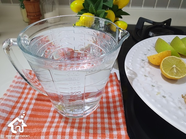Derin bir tencerenin içine dilim zencefil, limon dilimleri, yeşil elma dilimleri, yeşil çay, toz veya kabuk tarçın, karabiber tanelerini koyalım. 2 litre kaynar suyu ilave edelim. Kaynamaya başladıktan sonra üzerine bir kapak kapatıp 10 dakika orta ateşte kaynatalım. Daha sonra biraz ılıması için bekleyelim. Süzgeçle süzüp cam sürahiye koyup buzdolabına koyalım. Susadıkça, çay içmek istedikçe bunu içelim. Tadı acı değil ama siz daha şekerli bir lezzet arıyorsanız içerken bardağınıza bir çay kaşığı bal ilave edebilirsiniz.
