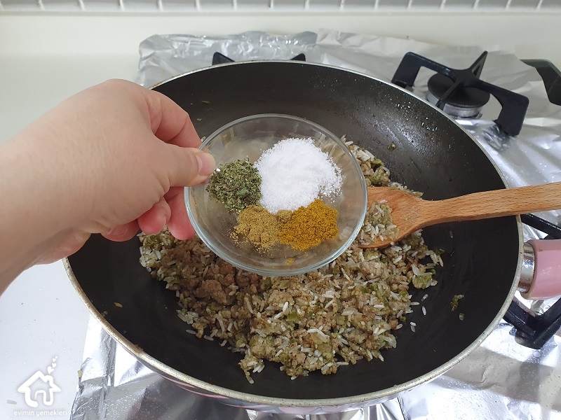 Yarımşar çay kaşığı kimyon, kuru nane, karabiber, köri