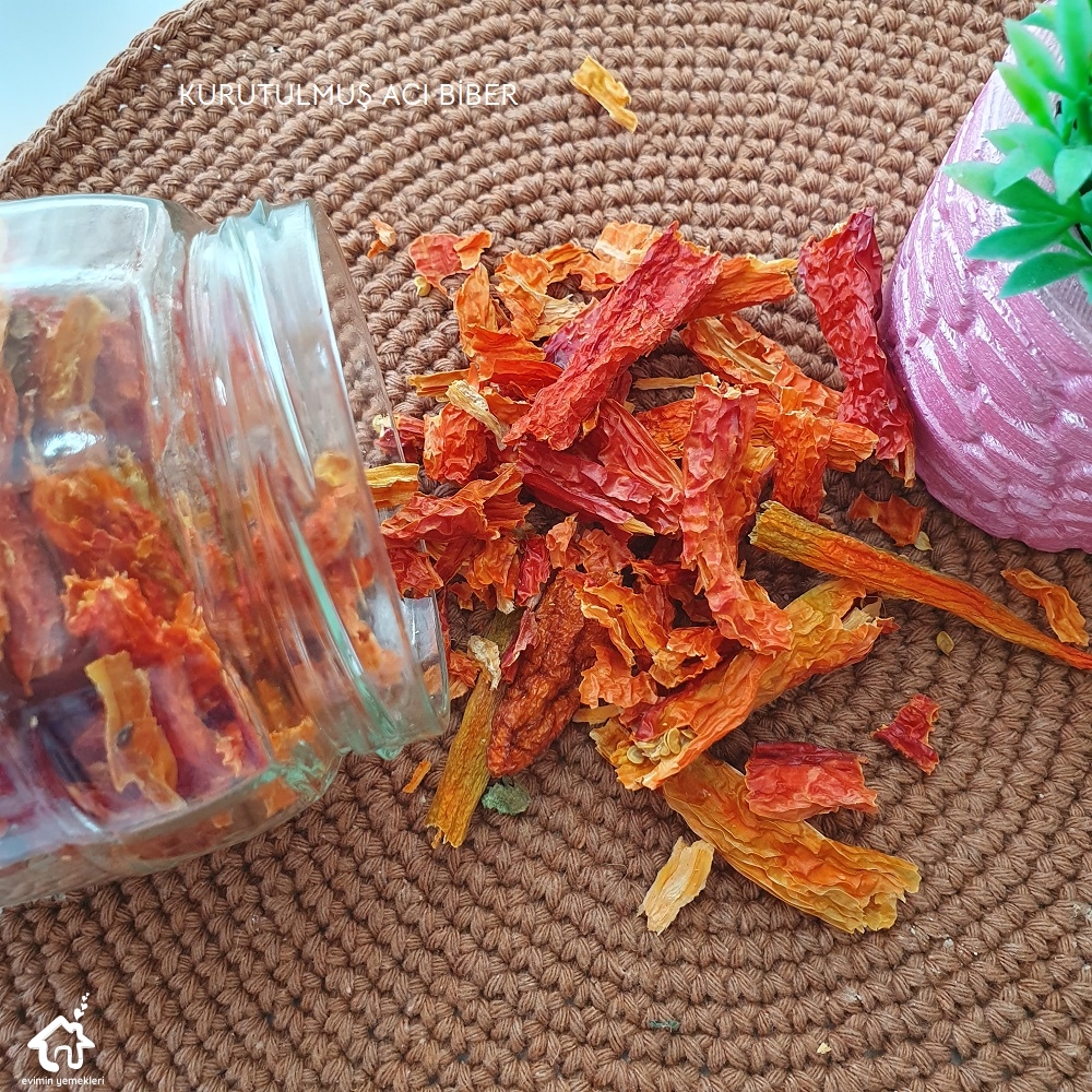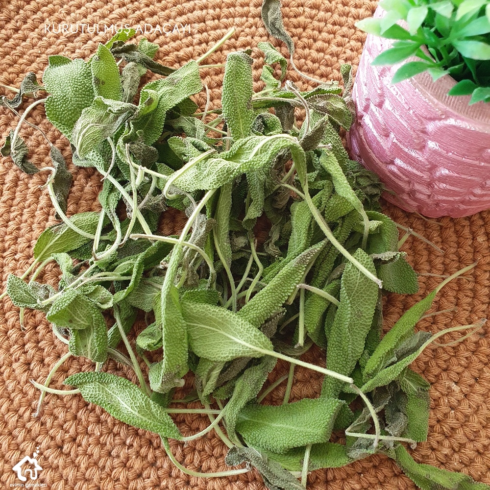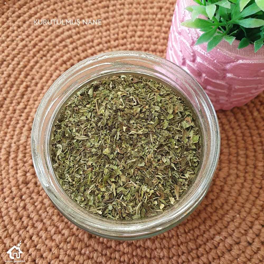 Kuru gıdalar: Kurutulmuş kış hazırlıkları da dondurucudakiler kadar önemli. Kurutulmuş patlıcan, kurutulmuş biber, kurutulmuş nane, kurutulmuş adaçayı, kurutulmuş biberiye, kurutulmuş maydanoz, papatya, kekik, fesleğen Bunlar benim için çok önemli. Adaçayı, kekik, biberiye kış aylarında grip olunca çok faydalı oluyor. Aynı zamanda dolma ve sarmalara baharat olarak kullanıyorum.