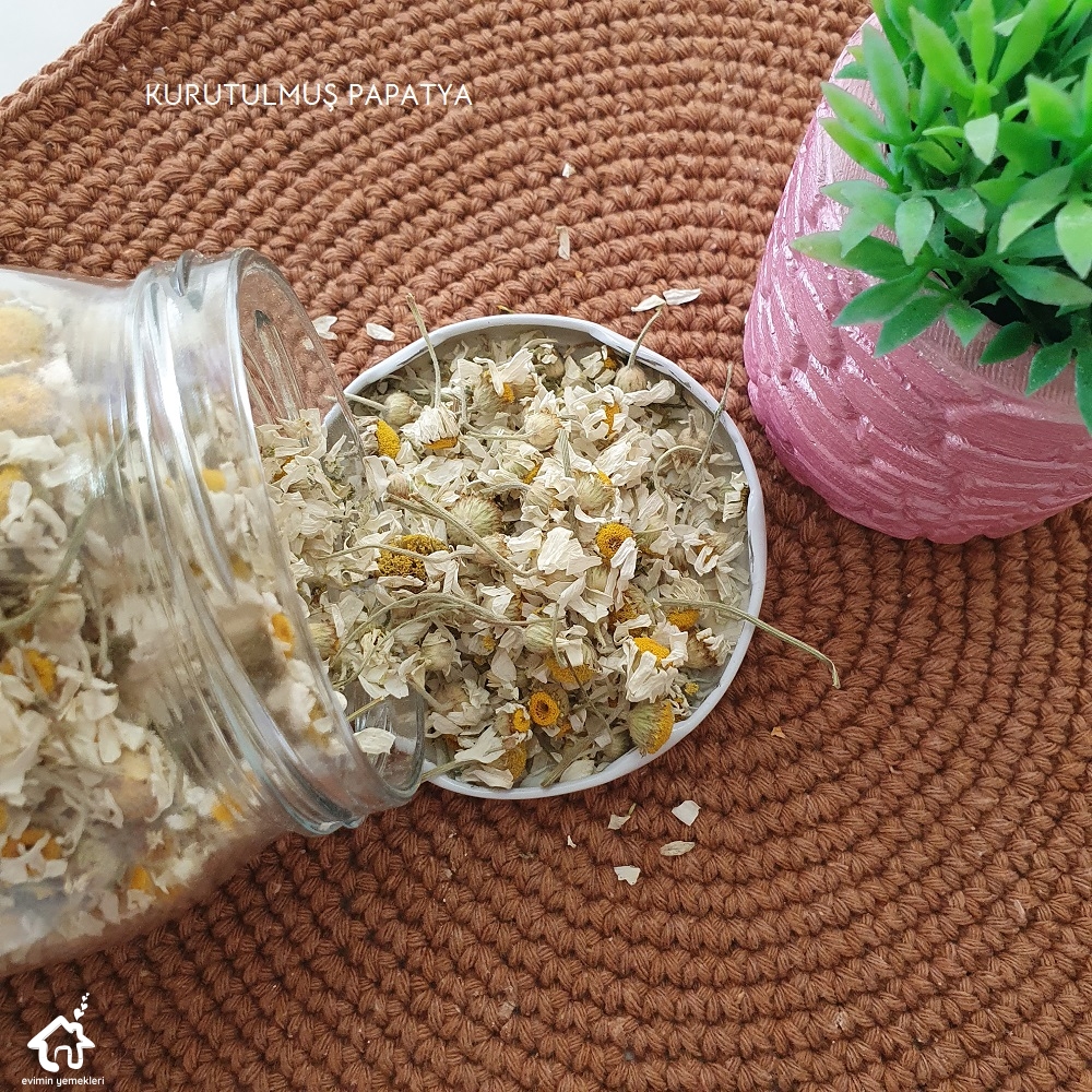Balkondaki saksılara adaçayı, kekik, nane ektim. Yaz güneşinde çok hızlı büyüyorlar. Ayda bir kez makasla kırpıp yıkayıp kurutuyorum. Kış mevsimi gelene kadar bir kavanoz doluyor. Onlar da bana uzun süre yetiyor. Evimde olmayanları da köyden pazara gelen teyzelerin bahçesinde yetiştirdiği yeşillikleri satın alıp kurutarak yapıyorum. Beş altı demet maydanozu kurutup bir kavanozu doldurabiliyorum. Nane de aynı şekilde. Bazen pazara papatya bile getiriyorlar. İnanılmaz güzel esansları var. Bulunca mutlaka alın, kurutun.