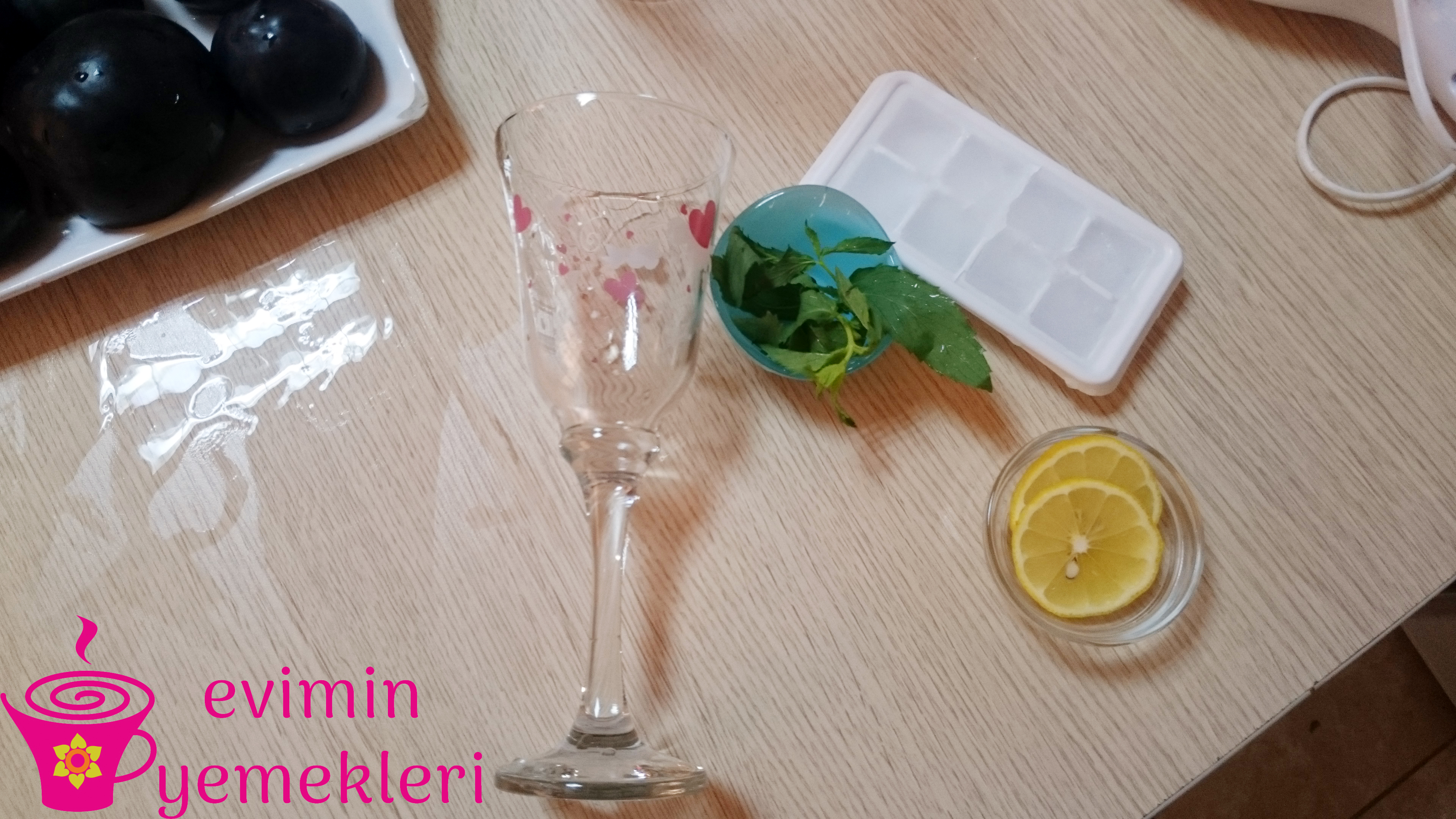 1 dal nanemizi koyuyoruz, 3 adet küp buzumuzu koyuyoruz. Önceden erikleri buzdolabında bekletirsenizde çok güzel olur. Tüm bu malzemelerimizi blender kabına koyup eriklerin kabukları kaybolana kadar blenderımızı çalıştırıyoruz. Tamamen püre haline geldikten sonra içeceğimizi bardağımızın içine koyup bir dilim limonumuzu bardağımıza yerleştiriyoruz. Bekletmeden içiyoruz afiyet olsun. Yapılış aşamalarını izlemek için video linkimizi buradan tıklayabilirsiniz.