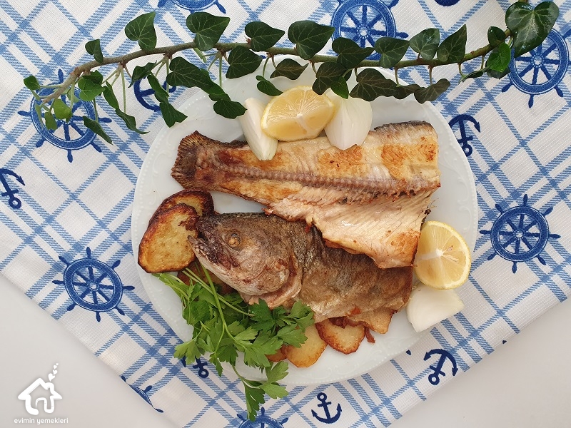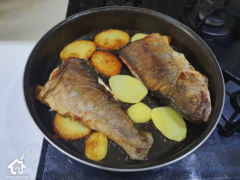 Balıkları çevirmeden önce tavayı ocaktan alın. Cızırtısı yavaşlayınca balıkları ve patatesleri çevirin. Tekrar kapağını kapatıp ocağa alın. Diğer tarafı da kızarana kadar pişirin ve kapağını açmayın. Bu şekilde pişirilen balık kendi buharında piştiği için yumuşak oluyor ayrıca bu şekilde pişirince her yere yağ sıçramıyor. Balığı pişirmeye başladığınız andan itibaren mutfakta davlumbazı çalıştırın. Ne balık kokusu kalıyor, ne yağ sıçrıyor ne de herhangi bir zorluk olmuyor. Hem çok lezzetli hem çok pratik hemde çok kolay bir tarif.